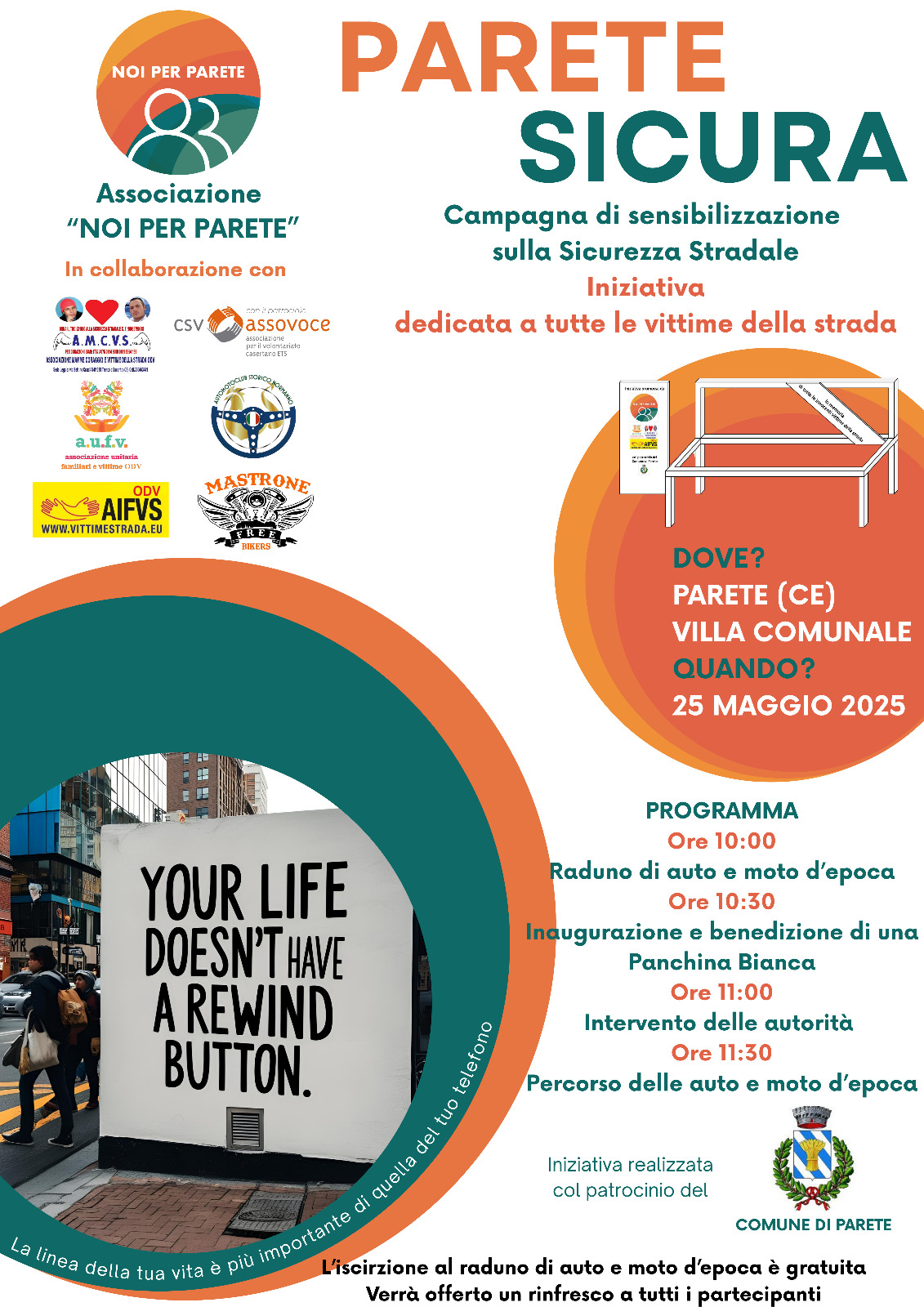 Grazie a tutti i partecipanti, della manifestazione “PARETE SICURA”: UNA GIORNATA DEDICATA ALLA SICUREZZA STRADALE. Dopo Cesa, Casapesenna, Carinaro, il 25/05/2025 (anche Parete ha dedicata una panchina a tutte le vittime della strada) https://www.facebook.com/share/v/1AvpepqaJ9/